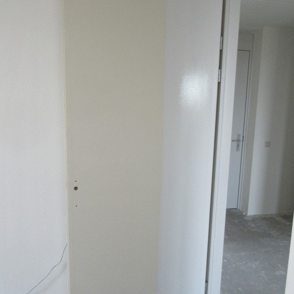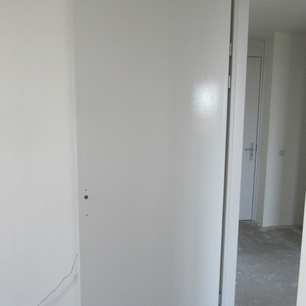 Alle binnendeuren en deurkozijnen zijn gelakt mat Trimetal FX Satin in de kleur grijs Ral 0103.