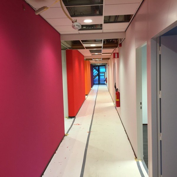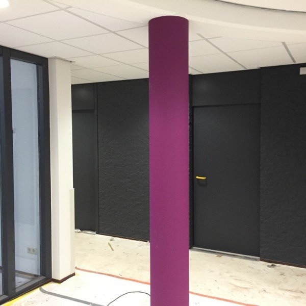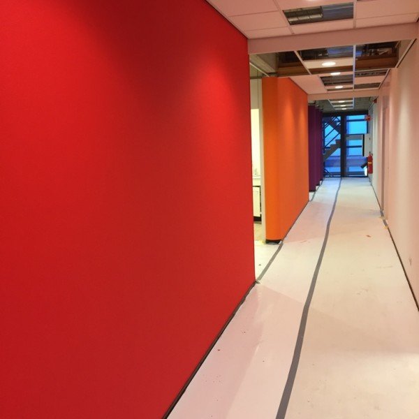 Adelante Hoensbroek, in samenwerking met Glas en Schildersbedrijf van Ooyen zijn de kantoren van de administratieve medewerkers en bestuurders voorzien van frisse en kleurige tinten.